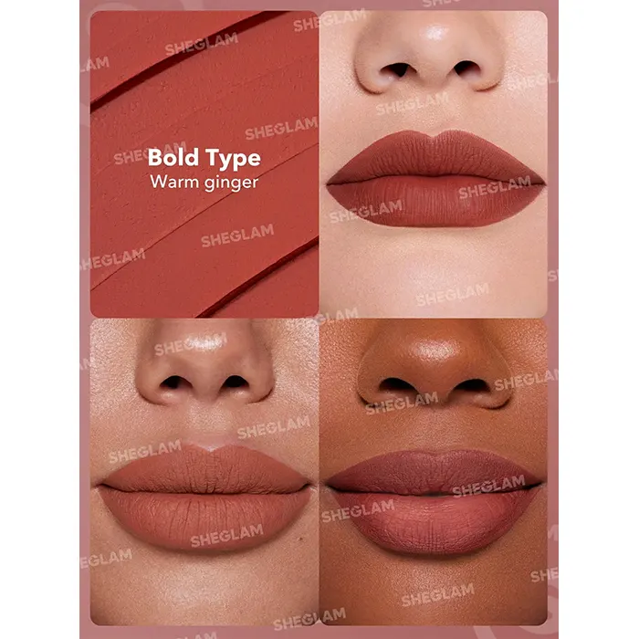 SHEGLAM Dynamatte Boom Waterproof Matte Lipstick رنگ Bold Type، فورا شما را با رنگ پررنگ و جلوه ماتش جذب میکند؛ این رژ با طراحی ضدریزه و ماندگار (تا ۸ ساعت)، از خوردن و نوشیدن راحت رد میشود و لبها را صاف و بیخط نگه میدارد.