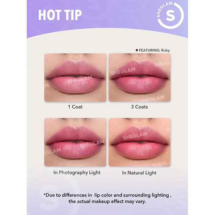 قبل و بعد بالم لب رنگی ژله ای مغذی شیگلم مدل ملو ژلو رنگ Ruby | مه چهر