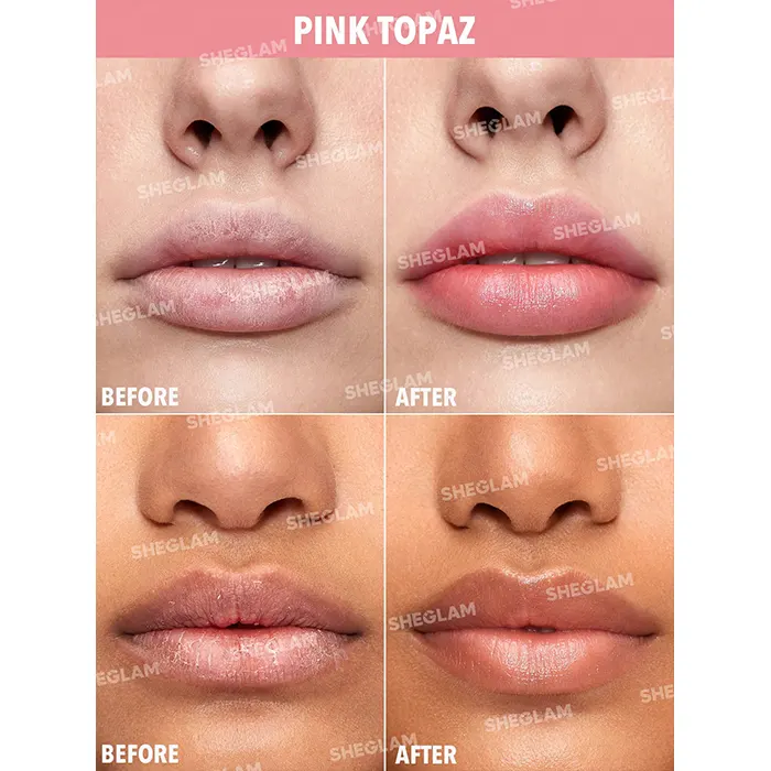 قبل و بعد بالم لب رنگی ژله ای مغذی شیگلم مدل ملو ژلو رنگ Pink Topaz | مه چهر